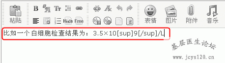 比如一个白细胞检查结果为:3.5×109/L 在编辑帖子的时候是按照图片中写的,发表后就是现在的结果!
