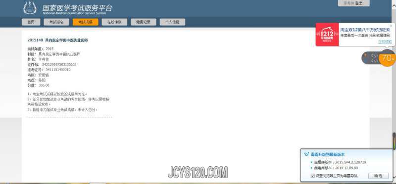 2015年我的中医执业医师成绩