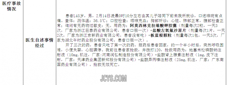 大年初七,新年的喜庆还未散去,一场人间悲剧却发生了。2月14日,江西上饶市的一位乡村医生,发生了一起医疗事故。45岁的患者L某因咽喉充血前来Y医生处就诊,医生给予口服用药治疗,患者服药后回家,约一个半小时后,患者突然呼吸困难,小便失禁,心脏骤停,经抢救无效死亡。