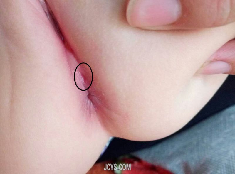 患者 女 9个月,  出生后发现肛门前侧有一裂痕(截石位12点外),未引起家长特别重视;表面发红 ,未见粪便 分泌物排出,缠绵不愈,多家医院诊疗,未给予明确诊治,直至今日;患儿未见明显不适,病情没有特别变化;