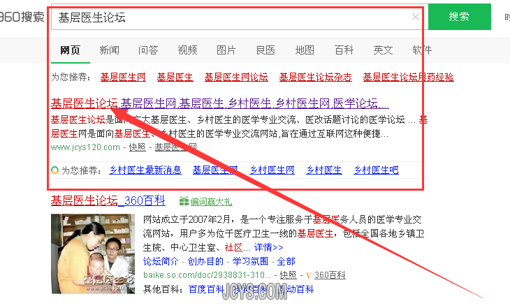 这时会出现一个基层医生论坛的标题链接我们就可以点击,如下图;
