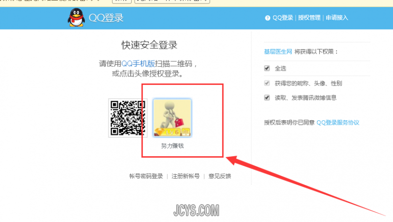 下一步就会显示你的QQ头像了,这时你就可以点击你的头像进行登录,如下图