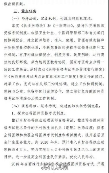 导读:卫计委、医师资格考试委员会联合印发《国家医师资格考试发展规划(2018-2020年)》,对未来三年的医师资格考试工作做出规划和部署。