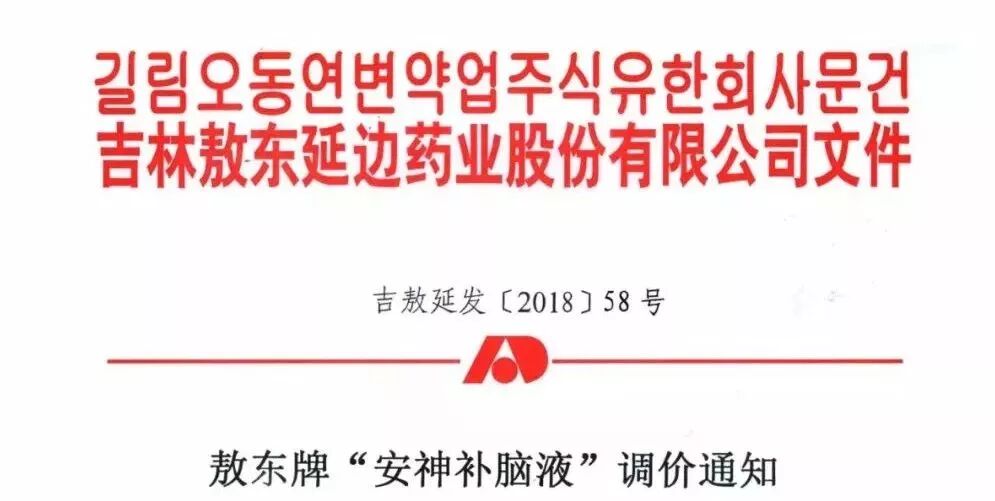 其次:此外,吉林敖东近日也下发通知,其拳头产品安神补脑液也涨价了。根据通知,自2018年9月15日起,该产品10ml*10支规格的零售价格将调整为32元/盒。据了解,其目前的零售价在25元左右,涨价幅度将近30%。