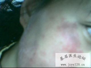 今天一外地患者,面部红斑有脱皮,稍痒,已经3个多月了,说是没有用过药。
