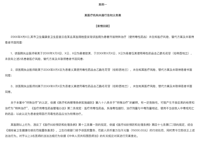 里面提到:3 名医生为患者使用去乙酰毛花苷(俗称西地兰)时未告知医疗风险、替代方案,也未取得患者书面同意。