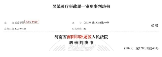 5月28日,记者从中国裁判文书网获悉,近日,某区人民法院公布一审判决,吴某作为医务人员,严重不负责任,造成就诊人死亡,其行为已构成医疗事故罪,判处有期徒刑一年,缓刑一年。