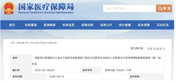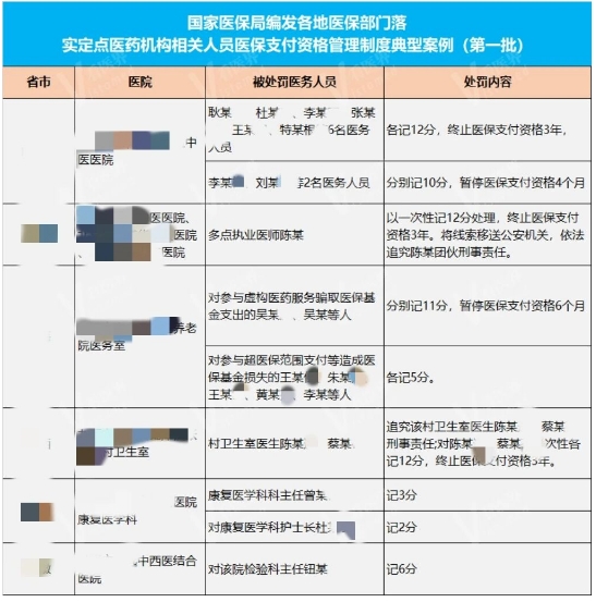 9月14日,国家医保局官网发布了各地医保部门落实定点医药机构相关人员医保支付资格管理制度典型案例(第一批),涉及6个省市、8家医疗机构、20余名医务人员被处罚。