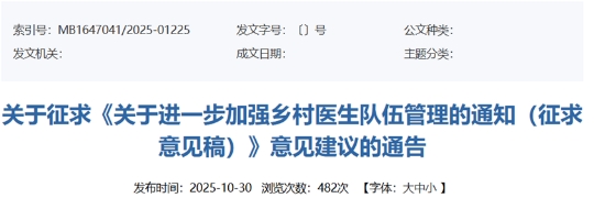 当下,提升乡村医生队伍专业化、规范化水平已成为基层医疗建设的重点工作之一。近日,新疆卫健委发布了《关于进一步加强乡村医生队伍管理的通知(征求意见稿)》(以下简称《征求意见稿》),再次对乡村医生这一基层医疗重要组成部分提出了新的管理要求(新疆卫健委,2025)