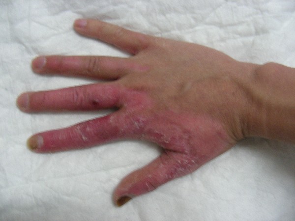 个人意见:看样子好象是个浅二度,一般不会留下疤痕,可能会留下色素沉着,出现第一种情况,可能是末梢神经受损了.一切治疗,以当地医疗部门的意见为准.