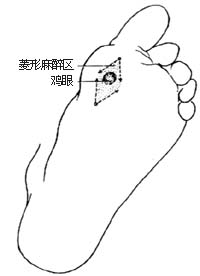 局麻(用1%普鲁卡因,以鸡眼为中心作局部菱形浸润麻醉,或直接注入鸡眼根部皮下组织内)。