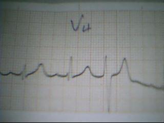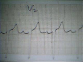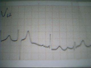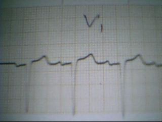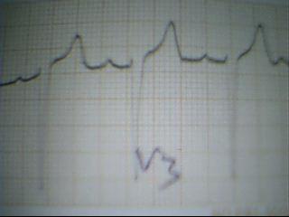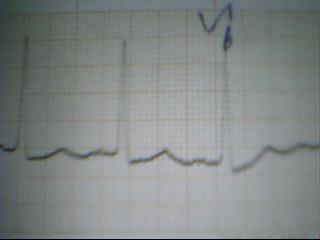 辅助检查:血常规:WBC12.5×109/L 血糖:5.6MMOL/L 心电图:窦率 室早 前壁陈旧性心梗,V1 ptf波。