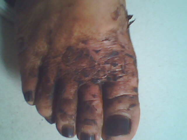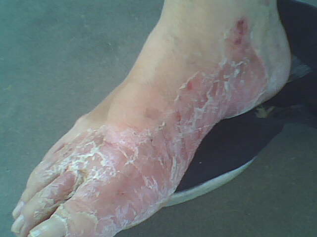病人现在病变部位皮肤瘙痒,疼痛难忍,不能行走。