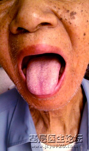 补充一下,由于是下午拍的,光线原因,实际上该患者舌苔是白色的。