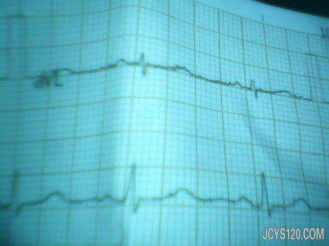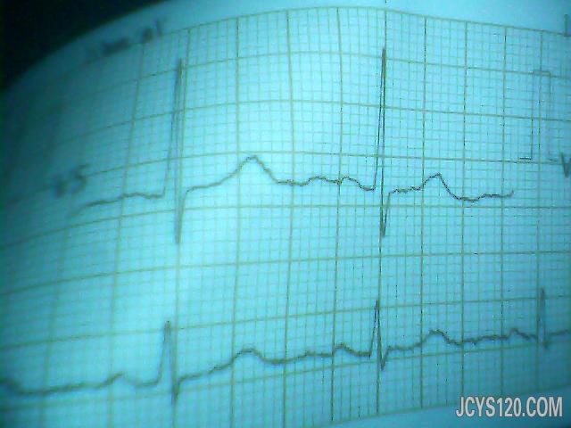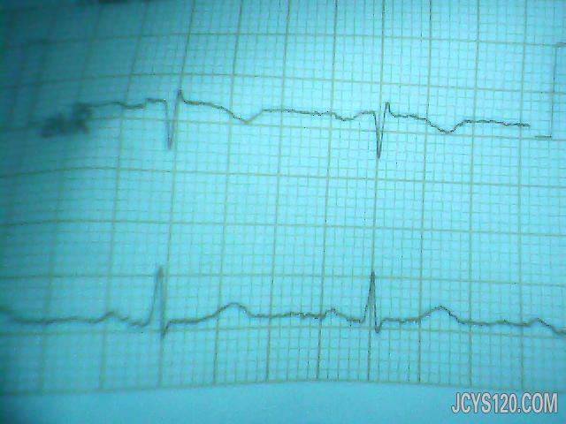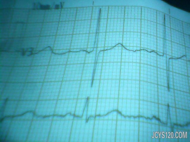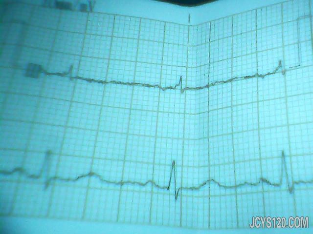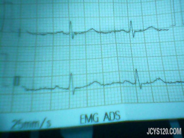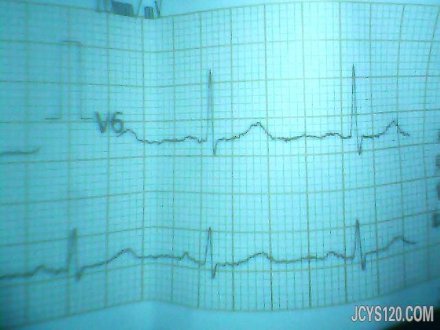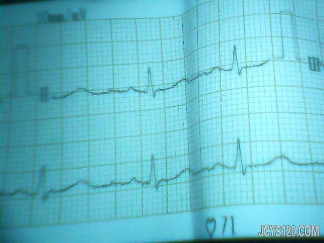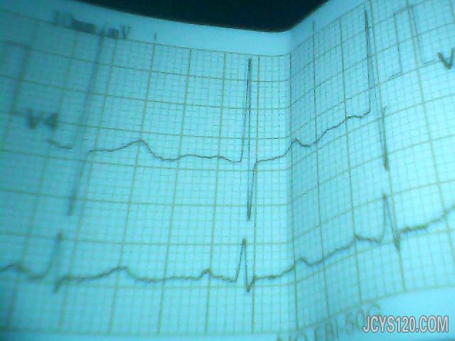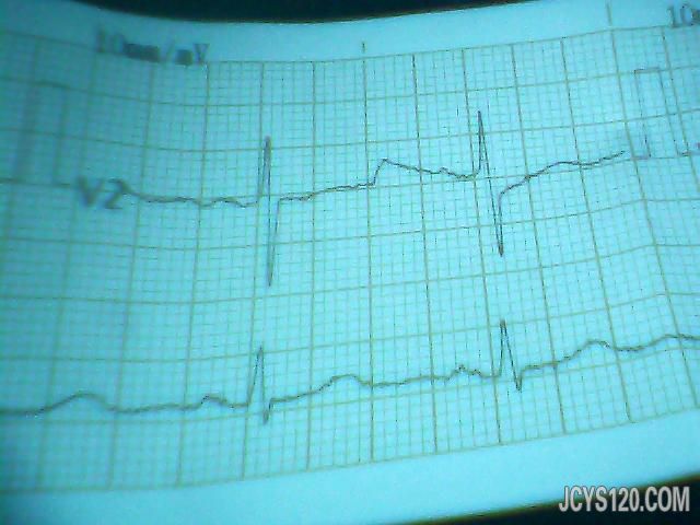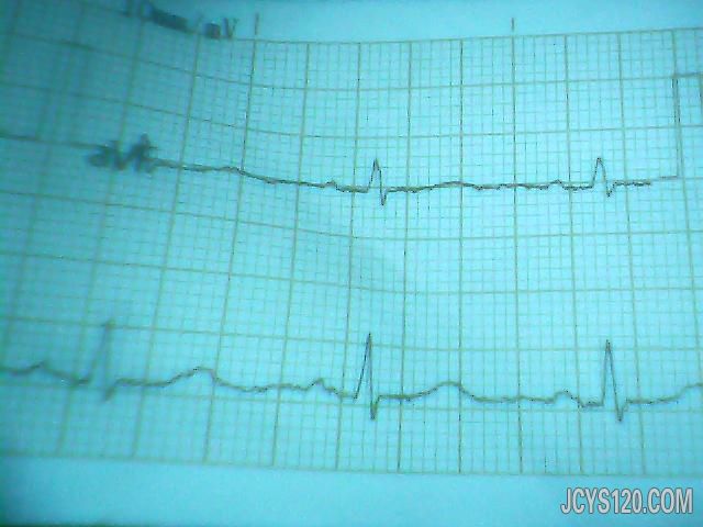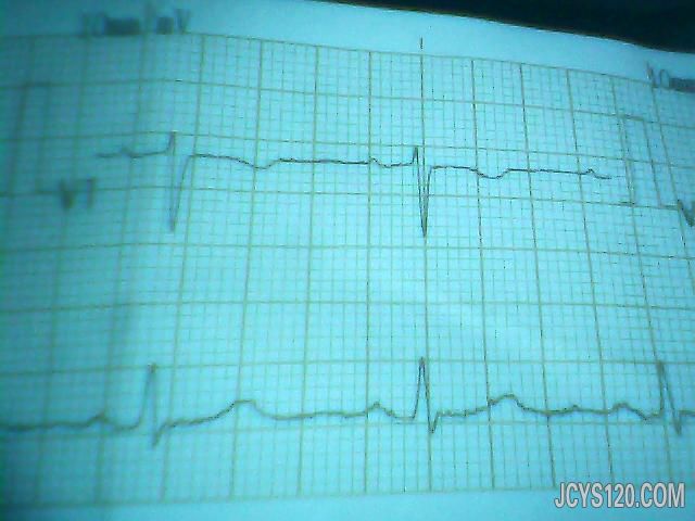 体格检查:T:36.5 P 71次 R 21次BP150|80.发育正常、自动体位、表情痛苦 神清 皮肤无黄染 脸色苍白, 双上眼睑无水肿、虹膜无黄染,全身淋巴结无肿大,无皮疹。颈软、口唇无发绀,无三凹征,胸骨无压痛 呼吸运动无减弱,节律有规律。双肺呼吸音正常,双肺未闻及干湿性啰音及胸膜摩擦音。心脏心界正常;听诊心律齐,无杂音。腹部稍膨隆,未见局部凹陷和胃肠型、腹壁静脉无怒张及手术疤痕。触诊腹肌软无抵抗、脐部下腹轻压痛、无反跳痛,未触及包块,叩诊鼓音,肝脾未触及,肝区无叩击痛,墨菲氏征阴性。肠鸣音10次,未闻及金属音。肾区无叩击痛。神经(-)余无异常发现。 辅助检查:心电图附图: