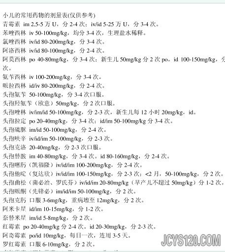 我是学习中医的。所以儿童西药这一块略懂,希望同仁传授一下,在我们卫生院儿科常用盐水和口服药的常用剂量,谢谢各位
