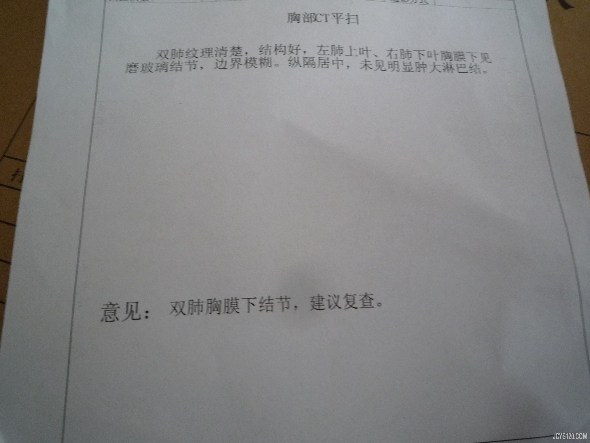 现病史:一个月前患者咳嗽,时轻时重,在家自行口服药物,具体药物不详,咽干咽痒,咳嗽时感觉胸部不适,咳嗽厉害还吐痰,痰中带有鲜血,一共吐了3次血痰,量不多,无发热,无恶心呕吐,无头疼头晕,咳嗽期间输液治疗3天(克林霉素 )感觉咳嗽减轻,停止输液,口服药物。中途去医院检查2次。