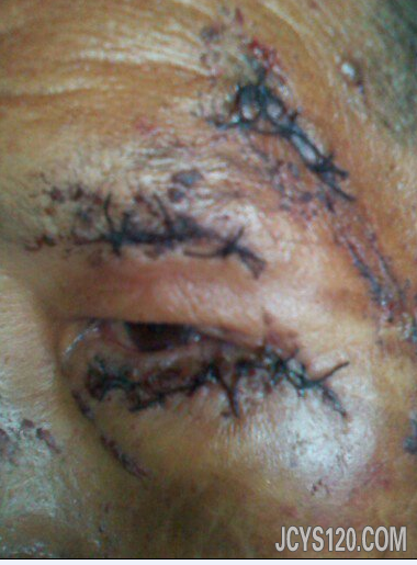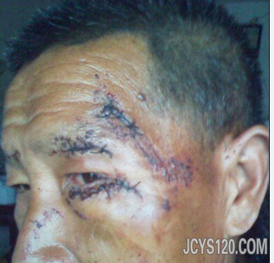 李某,50,男。 因帮别人浇地梁跌扑所致。来时伤面上,伤口上全是水泥浆。后来此伤口清洗时发现伤口里也灌了砂石水泥。 病人额部,下睑皮肤多处裂开(自述是被多根钢丝头挂开的。)。就是躲过了眼睛。