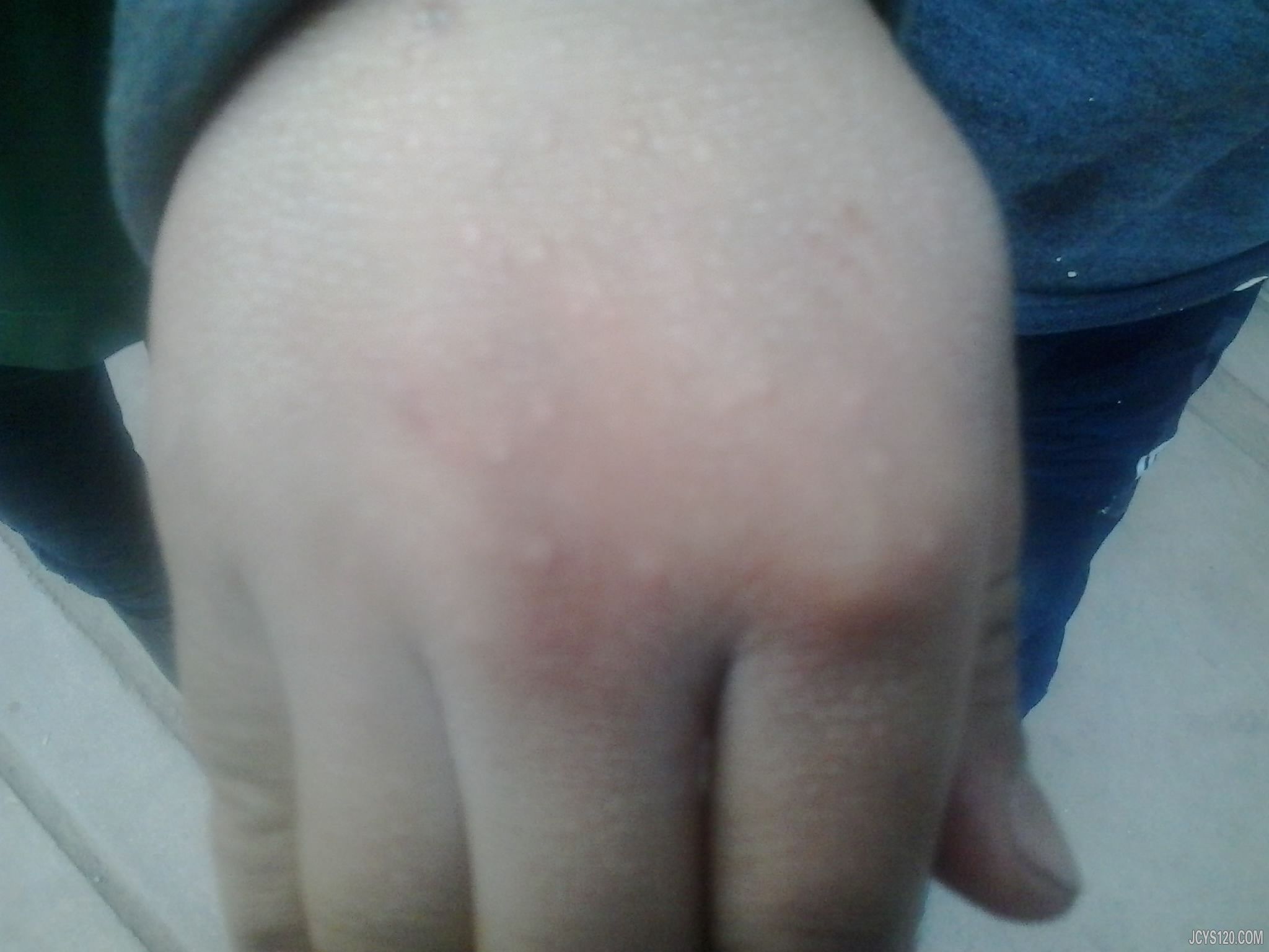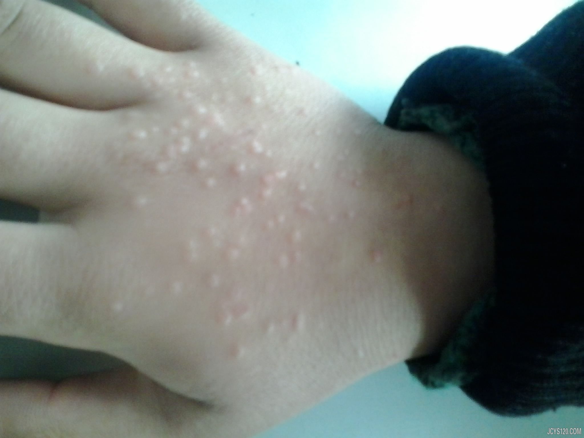 儿子手背起了好多小咯嗒去和平医院看的说是扁平疣,不好治。给予维A酸晚上用,干扰素白天涂患处。口服桃红丸,肌注卡介菌多糖,三个月,效果不佳。