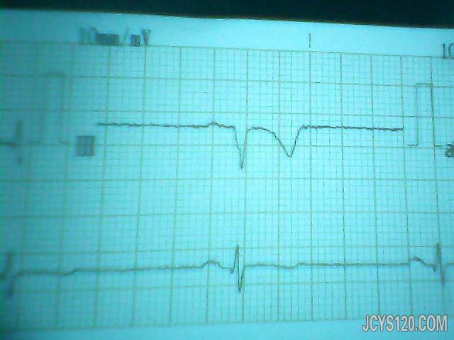 心电图诊断:窦性心动过缓,II,III,AVF,异常Q波,电轴左偏。