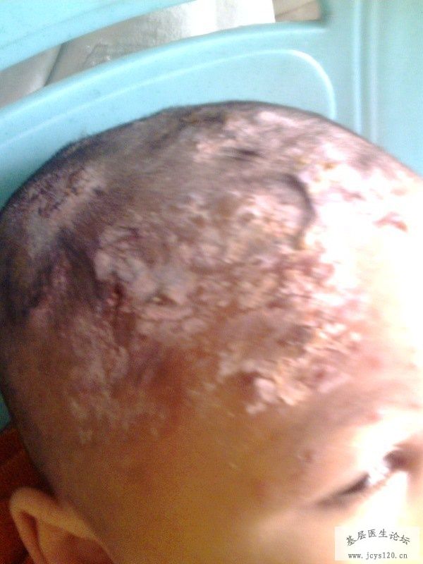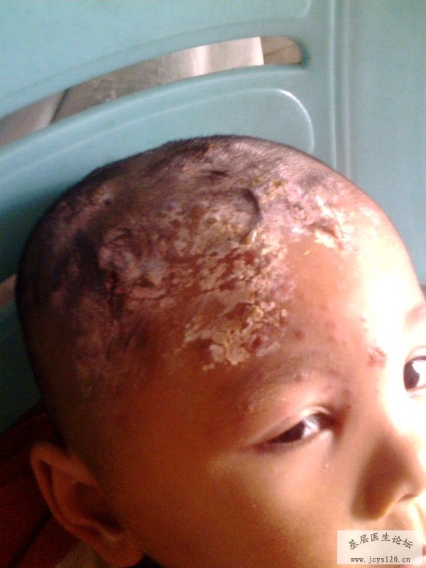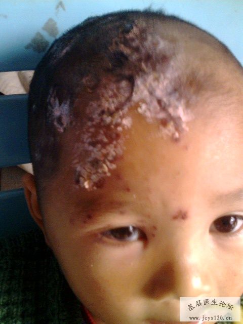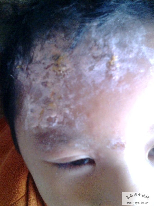 患儿,男,4岁,主诉:右侧头额部皮肤起水疱5天,加重3天。