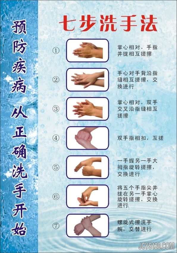 用七步洗手法清洁自己的手,清除手部污物和细菌,预防接触感染,减少传染病的传播。
