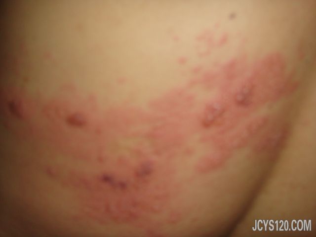本帖最后由 喜欢 于 2013-5-21 09:23 编辑 典型的带状疱疹,抗病毒治疗,还可以用中药治疗, 第二张图片拍的很好。