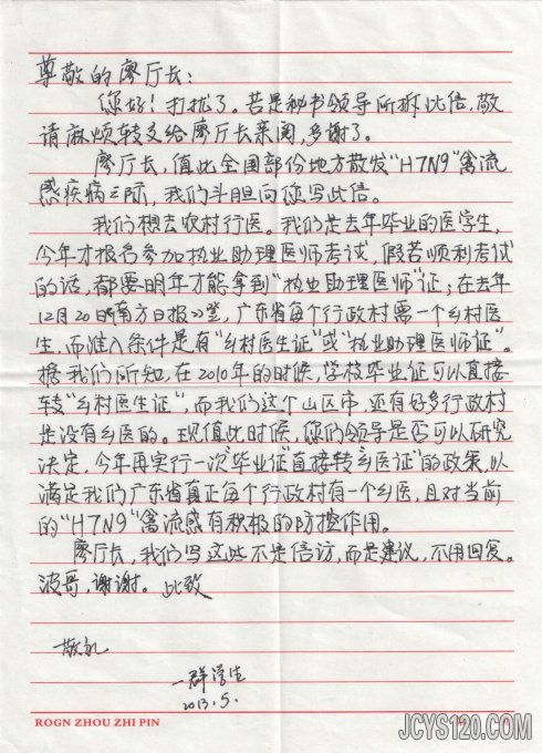 谁说乡医无大志?谁说乡村无人去?今天拆信发现一群医学院校毕业的学生发出既哀也真的哀鸣信,不由心中燃起一丝希望:乡村医生后继有人了!