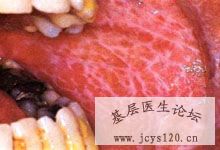 应该注意的是这个病有癌变的可能,目前没有什么特效疗法,临床治疗用维生素、抗菌药、激素类药、冷冻物化、微波、手术,激光等疗法,同时应消除精神紧张,生活力求规律。1.围绕病史、临床与实验室检查结果,针对有关因素予以治疗:凡损害无糜烂且范围局限时,可酌给2%~4%碳酸氢钠溶液与0.2%洗必泰溶液交替含漱,每日数次。每月复查1次,着重对危险区域的检查。2.去除机械性刺激因子,刮除磨牙颊面的牙石。为避免牙刷毛刺伤损害区粘膜,最好用棉签洗拭代替刷牙。3.发生局部糜烂时可撒敷复方类固醇粉,每日数次。症状明显时可局部注射确炎舒松,每周2次,与(或)加用抗生素;唇红部可涂肤轻松,但有痂皮时应先湿敷治疗,待痂皮脱落再涂一薄层,每日数次。4.肾上腺皮质类固醇全身应用应当慎重,效果并不理想,可试用小剂量与短程的方案,如强的松每日15mg,3次分服,约1~2周,服药期间应作大便隐血与血压检查。 5.局部可用抗霉菌治疗,对病情好转有一定帮助。 6.口服维生素A或维生素A酸。楼主实在不行就看中医吧。