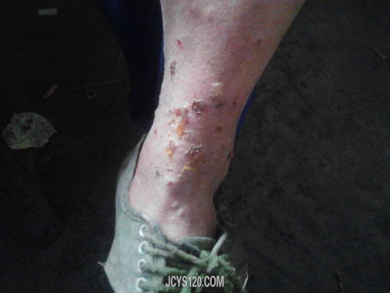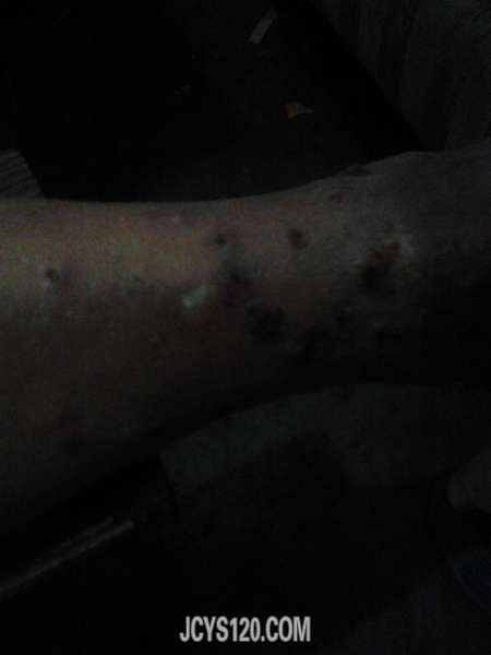 主诉;双下肢于5天前开始发痒,痒了后就抓,抓了后就开始起泡就像现在这个样子;从开始发病到现在还未用过药;