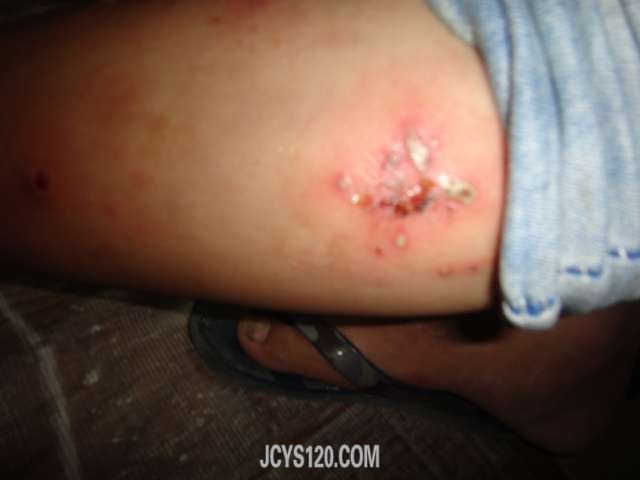 [color=Red]我的诊断是皮炎继发感染,用药如下 盐水250 呋辛钠1.5地米5MG。。盐水100维生素c 1.5g 左氧氟0.1静滴 口服头孢拉定2粒TID ,昨天用的药今天复诊效果满意,嘱咐患者明日在用药。明天再拍一图片上传