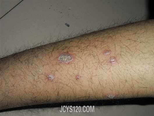 今天刚到的一个病人,发病半月余,在四肢上起的,自觉发痒难受来诊,大家看看是什么病,用什么药?
