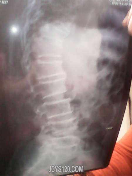 现病史:2月前患者不慎摔了一跤,感觉腰部疼痛,无肿胀,无下肢瘫痪,下蹲起身困难,在县医院照X线(见附图)治疗后没有缓解(药物不详),后听别人介绍到一家私立医院,口服药物(见附图),吃了一月后腰部疼痛缓解,一月前出现间断性腹痛,持续时间不长,无头晕恶心呕吐,曾在其他诊所口服药物,未缓解。今天来我门诊就诊。发病以来,饮食减少,睡眠好,大便一日一次,小便正常。