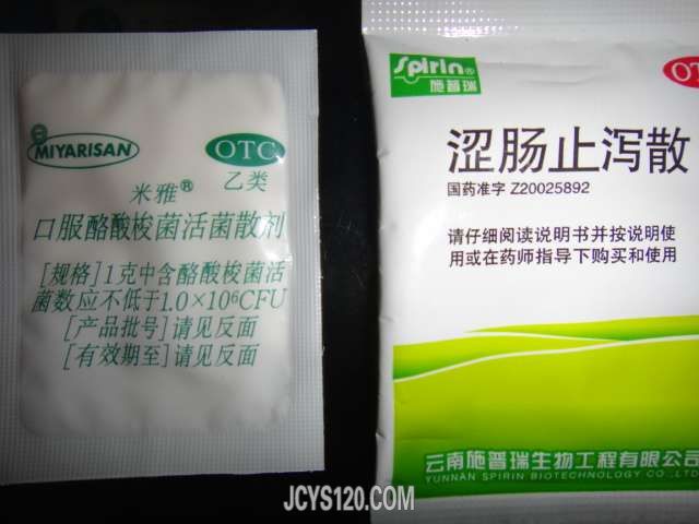 这个门诊不简单,从开的这些药物上就可以看出来,用药还算是比较先进,但是有大炮打蚊子之嫌,先来了解一下各种药物的药理作用: 药品名称:消旋卡多曲颗粒 商品名称:杜拉宝 通用名称:消旋卡多曲颗粒 主要成份: 消旋卡多曲 性状及剂型: 本品为白色或类白色颗粒,气芳香,味微甜。 适应症: 用于1月以上婴儿和儿童的急性腹泻,必要时给与口服补液或静脉补液联合使用。 规格: (1)10mg;(2)30mg。 用法用量: 口服,每日3次,每次按每公斤体重服用1.5mg;单日总剂量应不超过每公斤体重6mg。连续服用不得超过7天。推荐剂量:(1)婴儿服用剂量:1~9月龄(体重<9Kg),每次10mg,每日3次;9~30月龄(体重9~13Kg),每次20mg,每日3次。(2)儿童服用剂量:30月龄~9岁(13Kg~27Kg),每次30mg,每日3次;9岁以上(体重>27Kg),每次60mg,每日3次。 不良反应: 偶见嗜睡、皮疹、便秘、恶心和腹痛等。 禁忌: 以下人群禁用:肝肾功能不全者;不能摄入果糖,对葡萄糖或半乳糖吸收不良,缺少蔗糖酶、麦芽糖酶的患者;对消旋卡多曲过敏者。 注意事项: 1.连续服用本品5天后,腹泻症状仍持续者应进一步就诊或采用其它药物治疗方案;2.本品可以和食物、水或母乳一起服用,请注意溶解混合均匀。3.本品请勿一次服用双倍剂量。4.与细胞色素酶P450-3A4抑制剂如红霉素、酮康唑(可能减少消旋卡多曲的代谢)同时治疗时慎用;5.与细胞色系酶P450-3A4诱导剂如利福平(可能降低消旋卡多曲的抗腹泻作用)同时治疗时慎用。 孕妇及哺乳期妇女用药: 本规格不推荐孕妇及哺乳妇女使用。孕妇及哺乳妇女应慎用消旋卡多曲。 药物相互作用: 1.红霉素、酮康唑等细胞色素酶P450-3A4抑制剂可能减少消旋卡多曲的代谢,增加毒性; 2.利福平等细胞色素酶P450-3A4诱导剂可能降低消旋卡多曲的抗腹泻作用。 药物过量: 临床试验中,曾有患者单次服用本品2g(相当于成人常用治疗剂量的20倍)治疗急性腹泻未引起任何不良反应,无偶用大剂量发生不良反应的报道,本品尚无特异性的解毒剂。若发现用药过量,可按常规药物过量进行处理。 药理毒理: 1.药理作用消旋卡多曲是一个脑啡肽酶抑制剂。脑啡肽酶可降解脑啡肽,本品可选择性、可逆性的抑制脑啡肽酶,从而保护内源性脑啡肽免受降解,延长消化道内源性脑啡肽的生理活性,减少水和电解质的过度分泌。口服消旋卡多曲作用于外周脑啡肽酶,不影响中枢神经系统的脑啡肽酶活性,且对胃肠道蠕动和肠道基础分泌无明显影响。2.毒性研究有文献报道,灵长类动物服用治疗剂量100倍的消旋卡多曲12个月,未发现任何毒性反应。小鼠以50mg/Kg(2次/天)的剂量腹腔注射消旋卡多曲10天,在用药期间及停药后,未发现有毒性反应。 药代动力学: 1.吸收本品口服后能迅速吸收,对血浆中脑啡肽酶的抑制作用在30分钟时出现。对酶抑制作用的强度与用药剂量相关。当用药剂量为1.5mg/Kg时,2.5小时后对酶的抑制作用达到峰值(对酶的抑制作用达到90%),对酶的抑制作用持续8小时左右,t1/2约为3小时。2.分布本品组织分布较少,仅有1%的药物分布到组织中。血浆蛋白结合率达90%(主要与白蛋白结合)。3.代谢本品进入体内后,迅速转变为其活性代谢物(±)N-(1-氧-2-巯甲基-3-苯丙基)甘氨酸,然后转变为无活性代谢物二硫化物和巯甲醚,最后经尿、粪便及肺排泄。本品在成人体内对细胞色素P450酶系无诱导作用。4.消除放射标记法研究发现,本品主要通过粪便和尿排泄。重复给药不会改变本品的药代动力学特性。饮食延长脑啡肽酶抑制作用的出现时间,但对峰高和药时曲线下面积(AUC)无影响。 涩肠止泻散 【功效主治】中医 :收敛止泻,健脾和胃。用于脾胃气虚所致泄泻,及消化不良见上述症状者。 【用法用量】口服,一岁至二岁一日4~8克;二岁以上一日8~12克,分3次服用;成人一次4克,一日3次。在两餐饭间服用。 【化学成分】膨润土、岩陀。 口服酪酸梭菌活菌 药品名称: 商品名称:常立宁 通用名称:口服酪酸梭菌活菌片 英文名称:OralClostridiumButyricumTablets,Live 主要成份: 酪酸梭菌活菌 性状及剂型: 本品为白色或灰白色片剂。味微甜。 适应症: 因肠道菌群紊乱引起的各种消化道症状及相关的急慢性腹泻和消化不良等。 规格: 350mg/片,含酪酸梭菌活菌数不低于1.0×107CFU/g。 用法用量: 口服,成人,一次2片,一天3次。用温开水送服。急性腹泻,疗程3~7天;慢性腹泻,疗程14~21天,或遵医嘱。 不良反应: 在既往临床研究中,未见与药物相关的不良反应发生。 禁忌: 对微生态制剂有过敏史者禁用。