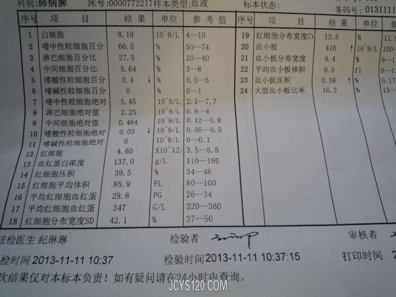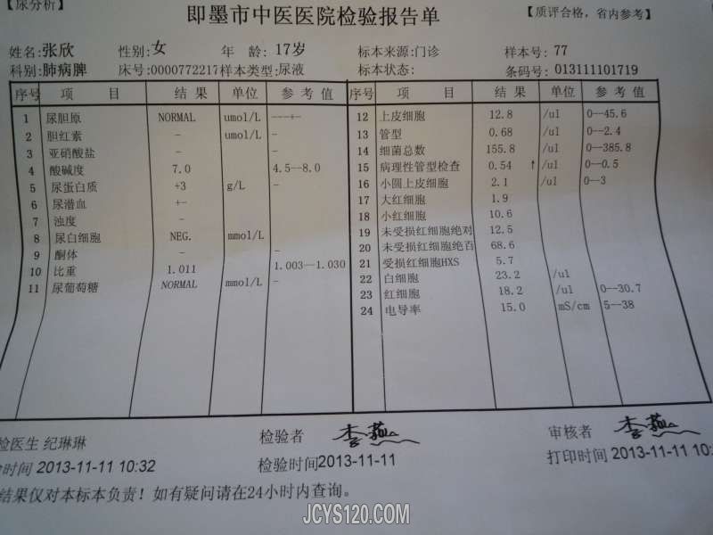病史简要:患者女17岁,工人 主诉:下肢浮肿10天 现病史:患者于10天前出现下肢浮肿从膝盖以下水肿明显,脸部稍稍水肿,无恶心呕吐,无头晕头痛,大小便正常,饮食可,睡眠可,患者没有其它自觉症状,没在意,被患者姐姐带来看病。 既往史:既往身体健康 家族史:无家族遗传病史 查体:血压130|85 体温36度 心率70次 患者一般情况可,精神可,营养一般,全身皮肤呈蜡样苍白,脸色苍白微微水肿,手部不肿,胳膊不肿,双下肢(膝盖以下)明显水肿(凹陷)足背水肿,双肺呼吸音正常,腹部未见异常,生理反射存在,病理反射未引出。 我感觉患者可能是“肾 ”的事,怀疑“肾病综合征”建议让患者尽快去医院确诊 今天早上患者带回化验单 大家看看此病诊断?治疗?中西医均可!