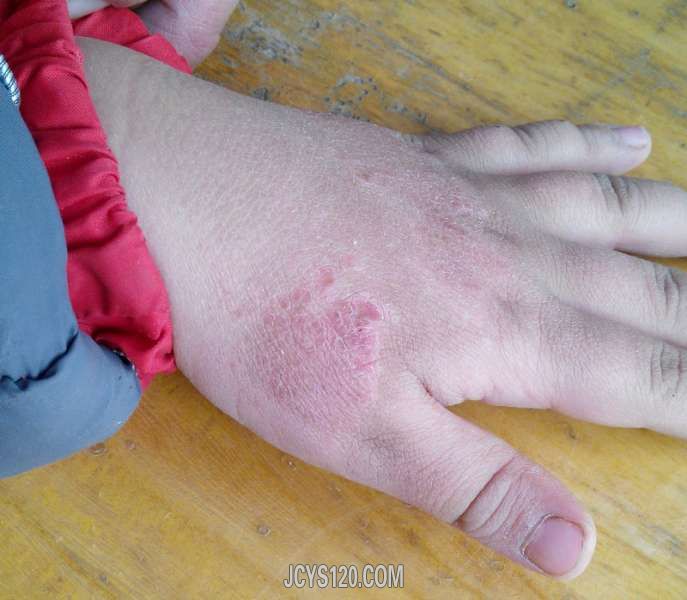前几日接诊一小儿,无明显诱因出现手背皮疹,详见图片,不痛不痒。初诊以为湿疹,给予派瑞松外用,使用十余天后,无效,特来求助!