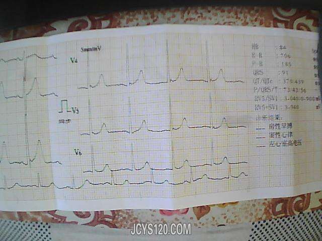 心电基本印象;窦性心律,早期复极综合征二型,胸导连V456 J点上移。偶发房早伴左前分支差传