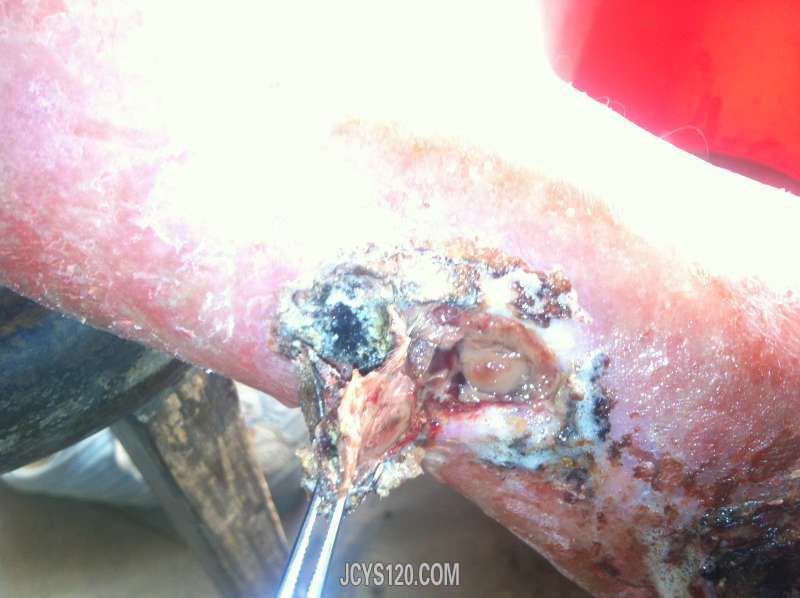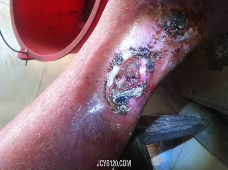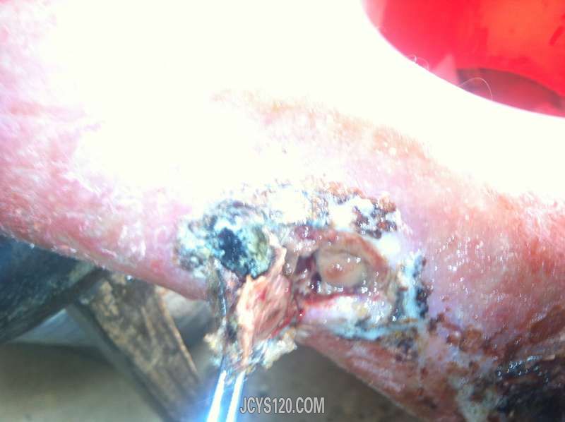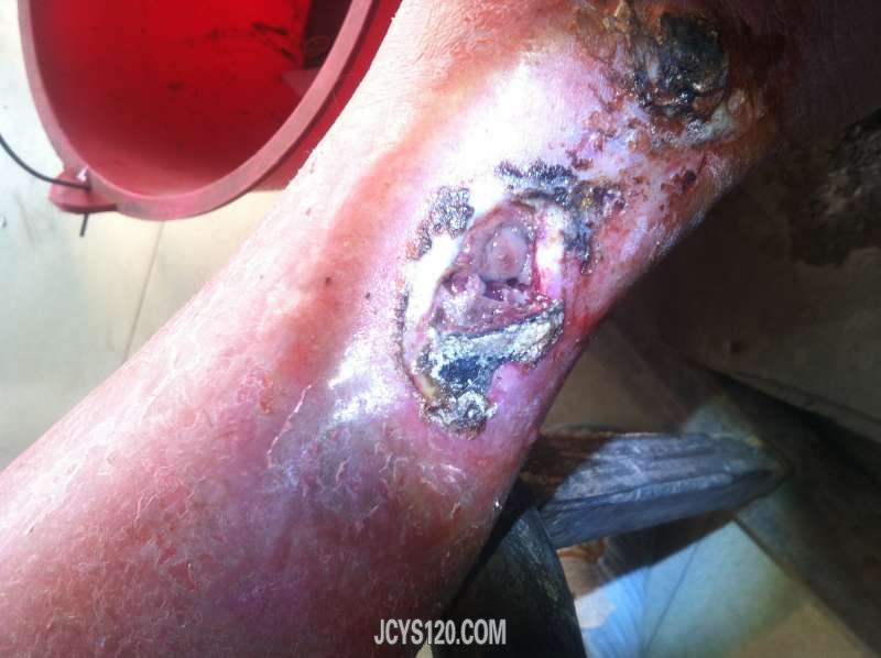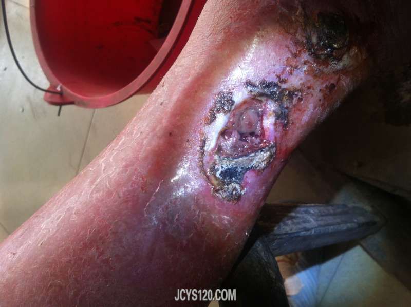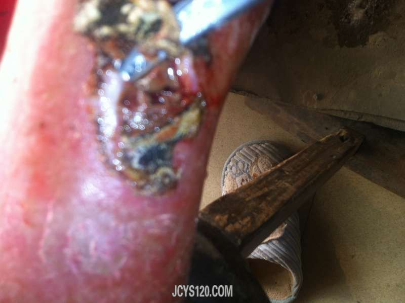 这病例治疗所需时间大约一个半月,拔毒祛腐需每天换药,生肌只需三天换药一次。每治疗一次,更新一次,希版主不要封杀。过程中更希望同行提出更好的方法,以帮助患者尽快恢复。谢谢!
