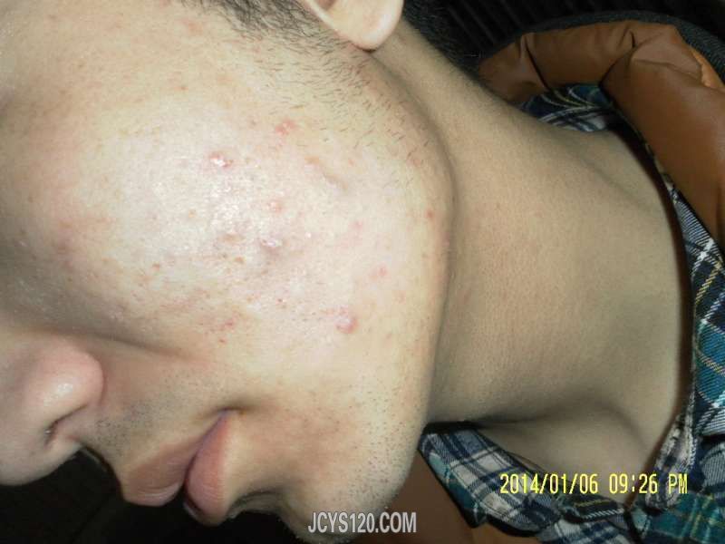 我感觉是痤疮 首先是肤质有直接关系 看图片首先毛孔粗大 油性皮肤 如果是干性皮肤就是极少长痤疮还有不知道患者的大便是否干燥 不知道他是否用手挤压过 如果可以挤压出白色的油状物质 就是痤疮 他应该从青春期就开始长 可与毛囊炎相鉴别 日常护理也很关键 每日一到两次温水洗脸 用清洁力好一些的洁面 清洁皮肤要彻底 这样可使毛孔通畅 忌用手挤压 我有的患者都留有瘢痕 忌用油脂类 含有糖皮质激素的软膏及霜剂 治疗方面严重的患者我用过甘草酸酐 还有也是在咱们论坛见过的烟酸肌醇酯0.4g/次口服 TID 15天一个疗程 但是患者在饮食方面 要禁忌油腻、辛辣,酒等刺激性食物平时多喝水 多食新鲜的果蔬 或者口服多种维生素 如果中药方面可以五味消毒饮 仅供参考