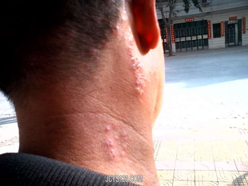 主要症状:先感觉不明原因剧痛,一天后起小水疱,第三天后就出现痒,用手抓后有点溃烂。