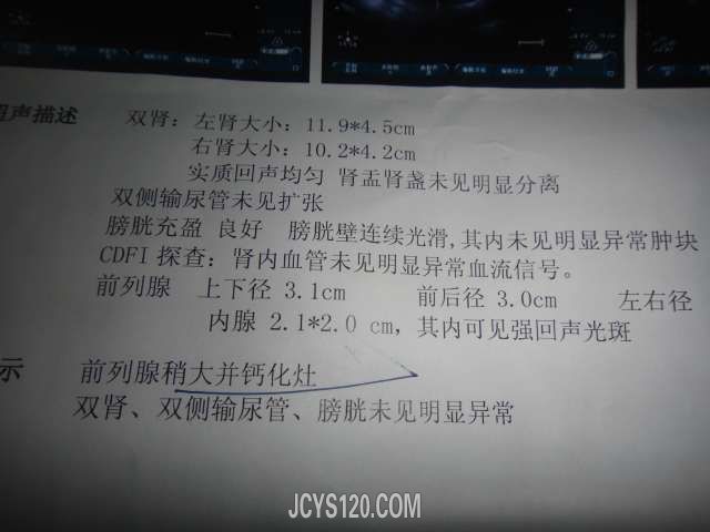 前列腺炎,前列腺增生并钙化。治疗上予抗生素及中成药活血化瘀药物,口服前列康。