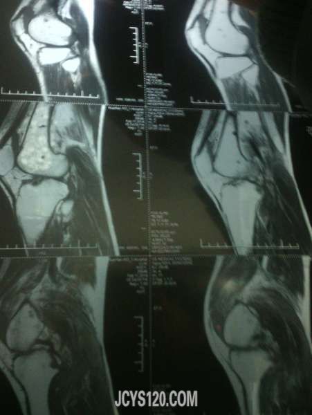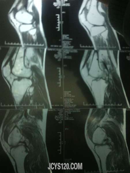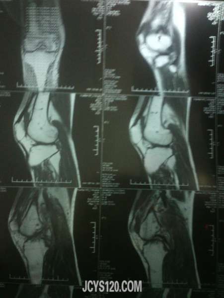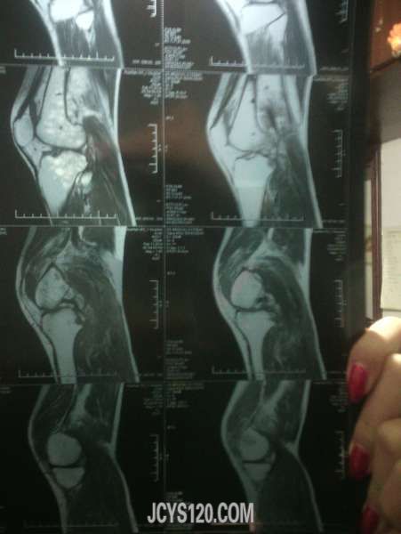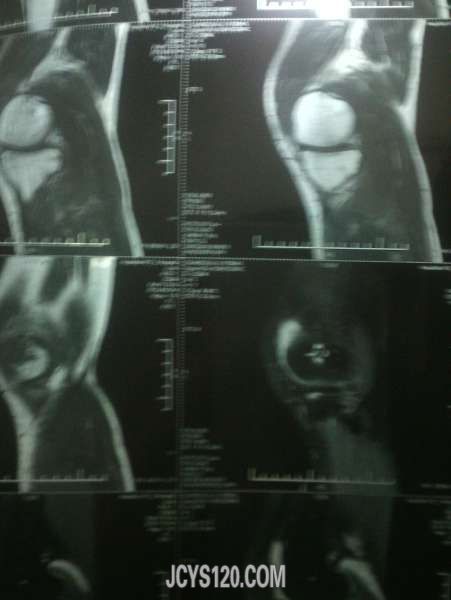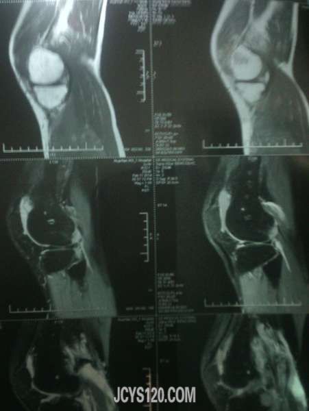 患者33岁男 因路滑扭伤!随即到医院检查,一般情况尚可,右侧膝关节。小腿腹部肿胀疼痛,磁共振影像如下,手机拍摄不是那么清楚!愿个为同行给点建议!需要做关节腔镜手术吗?有没有什么处理的方法给说说!!!