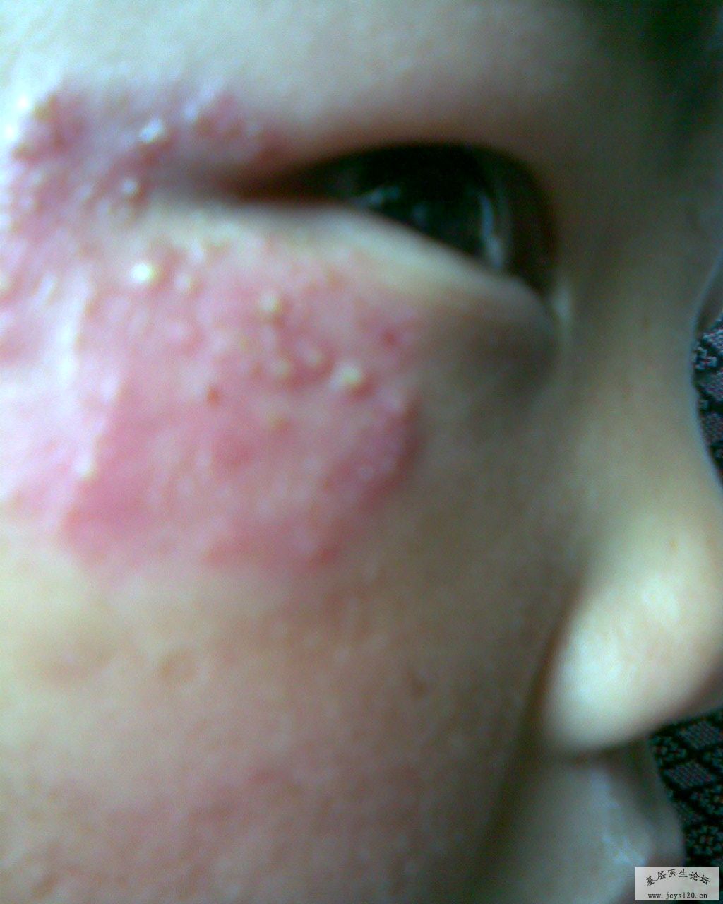本帖最后由 高大夫 于 2010-4-24 23:00 编辑 发病几天瘙痒厉害吗?如果瘙痒严重考虑湿疹合并感染,麦芙欣凝胶10g 外用 每日2次、曲安奈德氯霉素溶液10ml 外用 每日3次。口服罗红冲剂 左西替利嗪片10天。如果轻微瘙痒,发病5天以上,考虑带状疱疹。喷昔洛韦乳膏 外用 bid 、口服阿昔洛韦片 转移因子口服液。