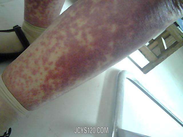 从用药史症状体征判断,应该是过敏性紫癜,建议查一下血常规,肾功能。可以按过敏性疾病治疗,如果短期不能治愈,病程迁延,最好在西药基础上加上中药治疗。 过敏性紫癜最常见的并发症是紫癜性肾炎,关节炎,贫血。要注意对并发症的治疗。个别病例迁延不愈,病程可达两年之久,要教育患者对该病有正确的认识,树立信心。