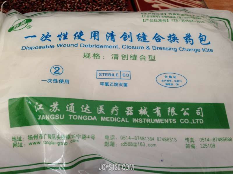 用的是一次性清创缝合包,是已经消毒的,我都是用这种,方便。只是里面的无菌镊子不太好用,太软。