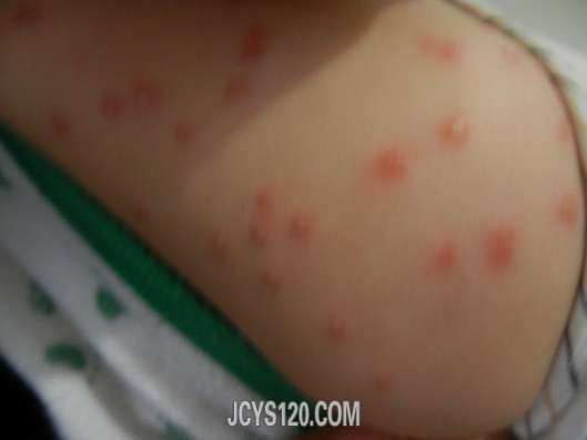 应该是丘荨。 至于楼上说的水痘应该不是,水痘不会发痒,而且有发热等证状,而且全身有皮损,分批出来