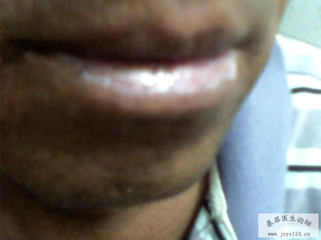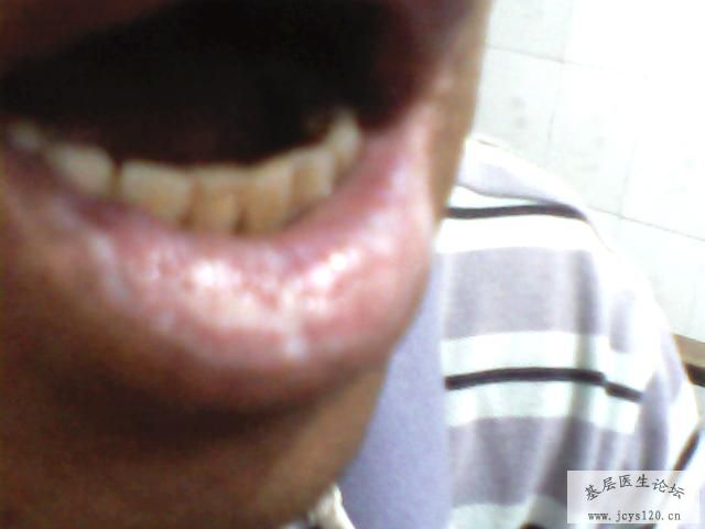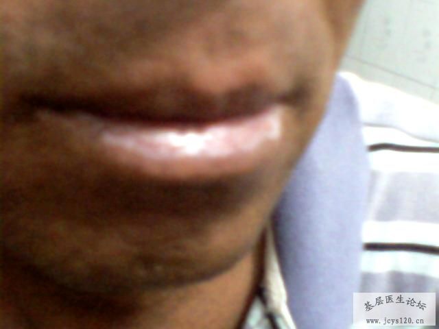 有一三门峡民工,男 48岁。在97年出现口唇苔癣样病变,出现严重的痒痛现象。遂到三门峡医院皮肤科就诊,主治医师介绍到第四军医大学口腔科,也没有形成一个完整的治疗方案。又到重庆 郑州 开封 北京等地求治,也无果而归。在民间的小单方永了不计其数,也无果。