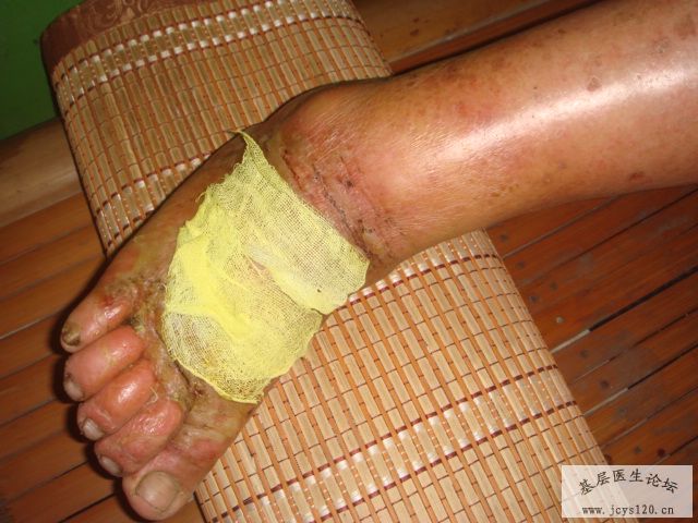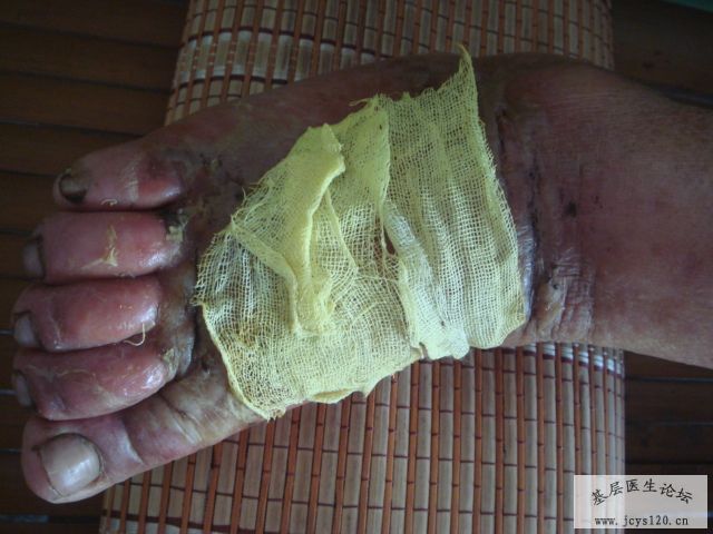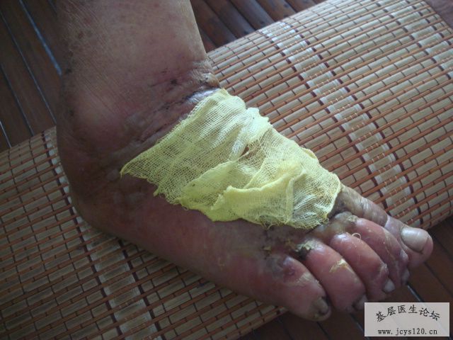 口服中药:五味消毒饮合四妙勇安汤加减: 金银花15野菊花15紫花地丁15天葵子15蒲公英30当归10玄参10甘草6牛膝20黄柏10苍术10