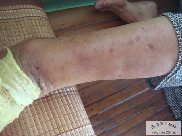右下肢淋巴管炎伴橡皮腿,皮肤感染6天(希望版主能把这种当天病例的帖子,置顶一两天,以便大家提供好方法治疗,便于发帖者及时纠正或有效治疗疾病)