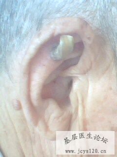 患者 男 76岁,4天前在县医院自带处方及药品来诊 患者于5天前因骑自行车不慎摔倒,当时没发现任何异常,无外伤,次日患者出现站立不稳,语言不清现象,其儿子急带父亲区县医院就诊,经CT检查报告:“双侧基底节、放射冠见多发斑点低密度灶,双侧侧脑室周围可见对称多发片状略低密度灶,脑室系统及脑池见扩大,中线结构居中。 印象:符合皮层下动脉硬化性脑病”。 患者平时身体欠佳,体格瘦弱,精神不振,自发病以来,呼吸喘憋 食纳差,站立不稳,行走需用人搀扶,语言不清 精神恍惚,二便正常。于4天前自带药品及处方来我诊所输液治疗。处方如下:20%甘露醇250ML ,5%GNS250ML+脑蛋白水解物60MG , 5%GS250ML+银杏达莫注射液20ml. 查体:体温36.8度;脉搏96次;呼吸15次;血压150/90,患者神经系统未发现阳性体征,听诊 双肺有散在的湿罗音,右肺较严重,双下肢浮肿,右侧耳廓上端见一赘生物,质地硬 钙化,形如人的指甲,该赘生物首次见到,余阴性。 CT检查见上 无其他辅助检查 患者在30年前有肺结核病史,无烟酒嗜好 无其他病史 按县医院处方输液3天未见明显效果,根据患者的症状和病情,并认真征求患者家属的意见后,于昨天将处方添加:去掉甘露醇,加:0.9%NS100ML+头孢曲松3G; 5%GS+黄芪注射液30ml; 10%GS500+VC2.5G+B60.3G+KCL10ML+门冬氨酸钾镁20ml; 50%GS20ml+氨茶碱0.25G IV ,患者今天来门诊发现 精神好转 呼吸喘憋现象改善,余如常 需要说明的问题: